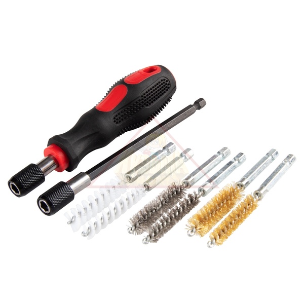 Каждый ёршик отличается высоким качеством материалов: нейлон с щетинками различных диаметров для аккуратной очистки, а также нержавеющая сталь и латунь для более деликатных задач. Удлинитель и магнитная фиксация гарантируют удобство в использовании. Компактный и удобный в транспортировке пластиковый кейс обеспечит долговечность хранения и организации инструмента, делая данный набор незаменимым помощником в любом автосервисе.