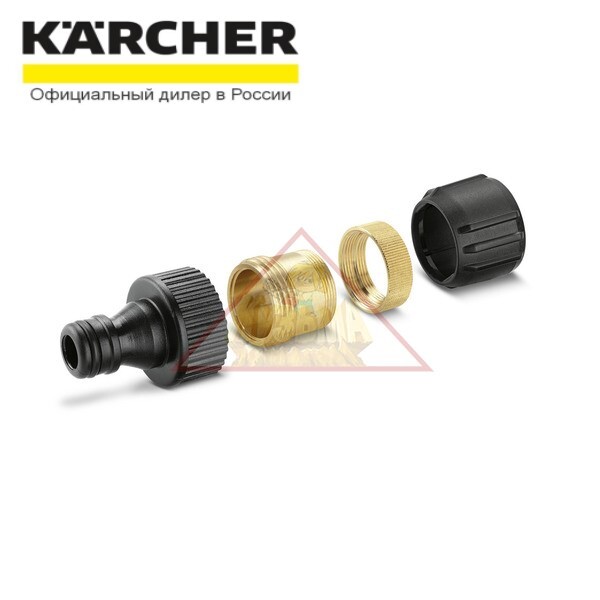 Комплект для присоединения к внутридомовому крану позволяет присоеденить садовый шланг к крану в доме. Особо прочное исполнение. Стандартная система стыкового соединения.