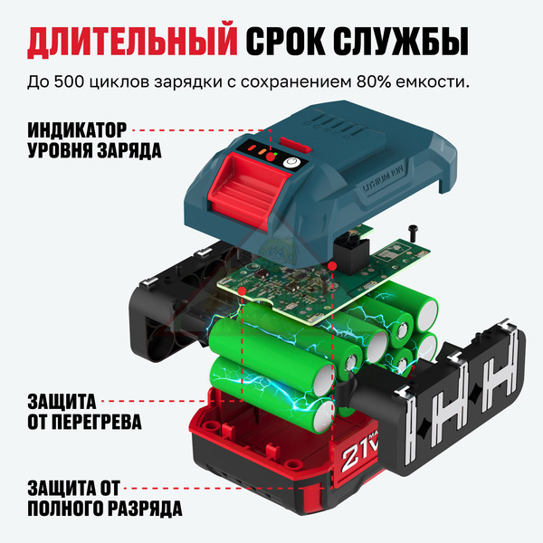 Защита от перегрева: аккумулятор предотвращает перегрев как элементов, так и самого инструмента, обеспечивая безопасную работу
