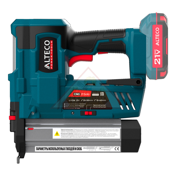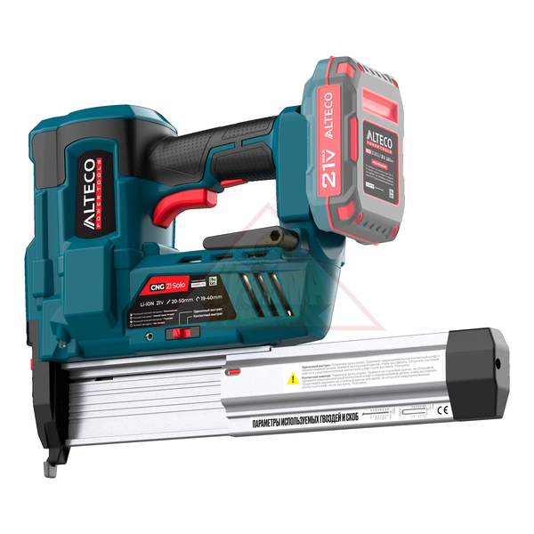 Аккумуляторный гвоздескобозабивной пистолет ALTECO CNG 21 Solo (без АКБ И ЗУ) это портативный инструмент, который используется для удобного и быстрого забивания гвоздей, скоб или штифтов в различных материалах, таких как дерево, пластик, мягкий металл и другие. Он работает от аккумуляторного питания, что обеспечивает мобильность и удобство использования без привязки к электрической розетке.