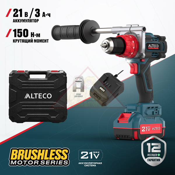 Бесщеточная аккумуляторная ударная дрель-шуруповерт ALTECO CID 21-150 BL 1x3Ah — мощный инструмент с крутящим моментом до 150 Н·м, предназначенный для сверления, завинчивания и ударной работы. Оснащен надежным металлическим патроном, импульсным режимом, функцией удара и LED-подсветкой для работы в любых условиях. В комплекте идет мощный аккумулятор 3 А·ч, быстрозарядное устройство и боковая рукоятка.