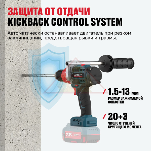 Бесщеточная аккумуляторная ударная дрель-шуруповерт ALTECO CID 21-150 BL Solo (без АКБ И ЗУ) — мощный инструмент с крутящим моментом до 150 Н·м, предназначенный для сверления, завинчивания и ударной работы. Оснащен надежным металлическим патроном, импульсным режимом, функцией удара и LED-подсветкой для работы в любых условиях. В комплекте идет боковая рукоятка.