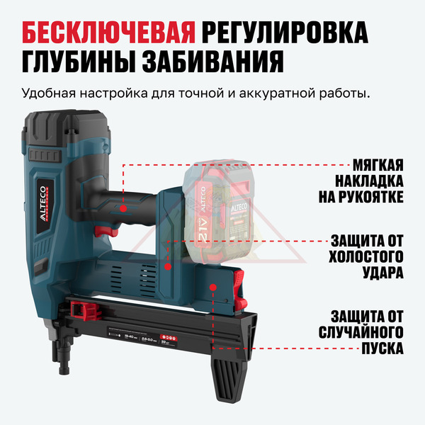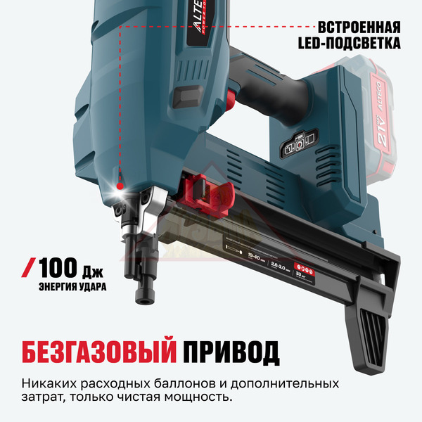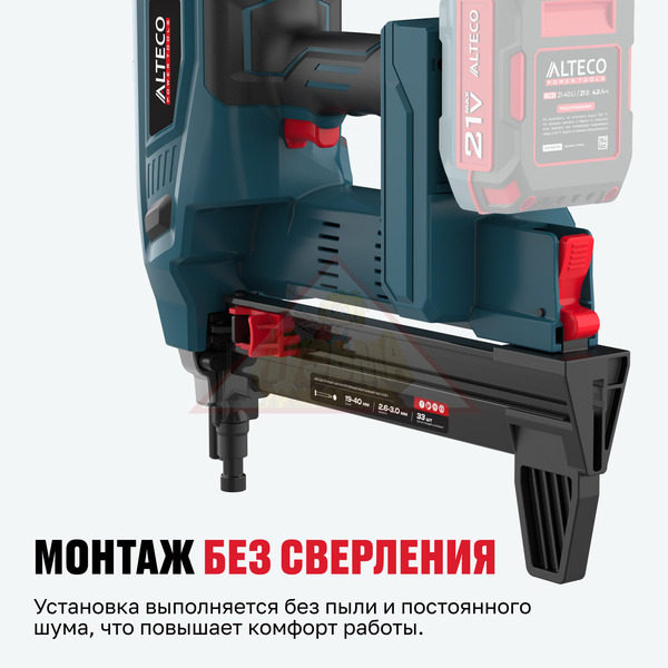 Бесщеточный аккумуляторный монтажный пистолет ALTECO CGN 21-40 BL Solo предназначен для строительно-монтажных работ по бетону, металлопрокатным изделиям, кирпичной кладке, дереву и другим материалам. CGN 21-40 BL Solo обеспечивает быстрый и чистый монтаж без газа, пыли и шума. Он отличается высокой производительностью, удобной регулировкой глубины и системой защиты для безопасной работы. Эргономичная конструкция, LED-подсветка и единая аккумуляторная система 21Vmax ALTECO делают его идеальным инструментом для профессионалов.