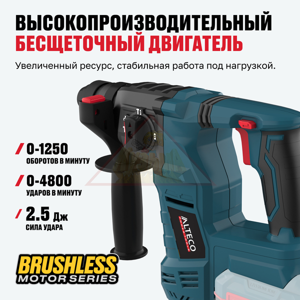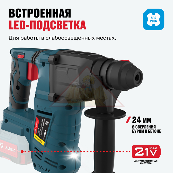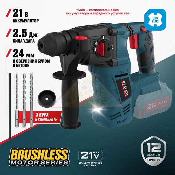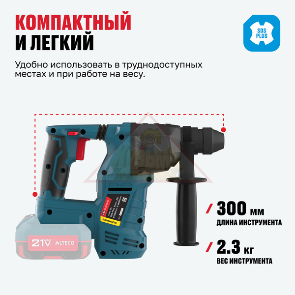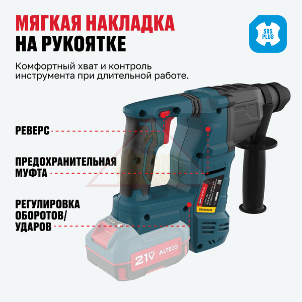 Бесщеточный аккумуляторный перфоратор ALTECO CRH 21-25 KV BL Solo идеально подходит для сверления, долбления и работы с бетоном, кирпичом и другими твердыми материалами в любых условиях — как в помещении, так и на выезде, без привязки к сети. Компактный и легкий корпус облегчает работу на высоте и в труднодоступных местах. Перфоратор имеет защиту от перегрева и перегрузки, а в комплекте поставляется все необходимое для начала работы.