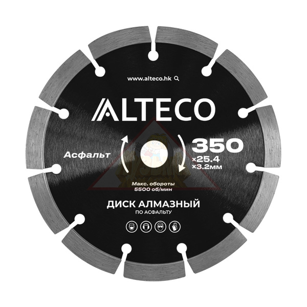 Диск алмазный ALTECO 350x25.4x3.2 мм применяется для сухого реза по асфальту. Толщина алмазного сегмента - 3.2 мм.