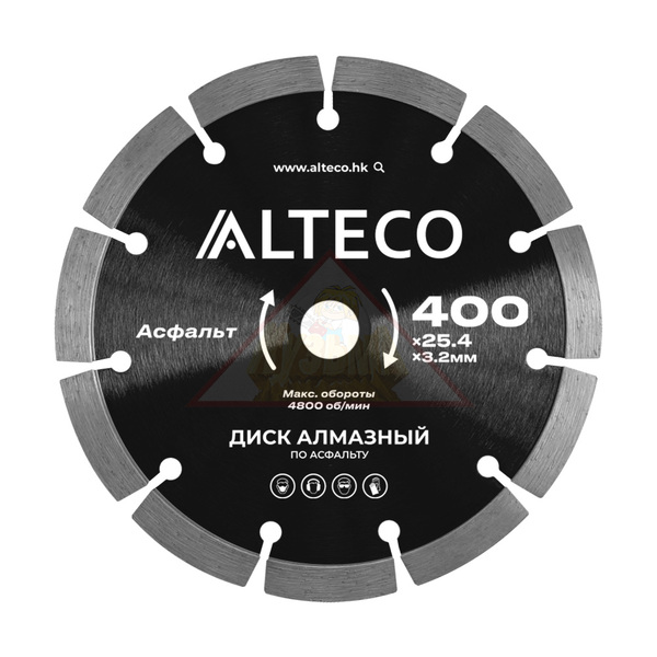 Диск алмазный ALTECO 400x25.4x3.2 мм применяется для сухого реза по асфальту. Толщина алмазного сегмента - 3.2 мм.