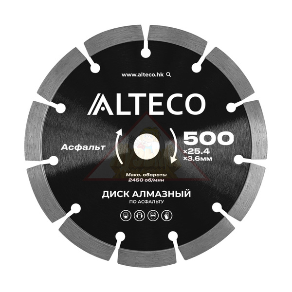 Диск алмазный ALTECO 500x25.4x3.6 мм применяется для сухого реза по асфальту. Толщина алмазного сегмента - 3.6 мм.