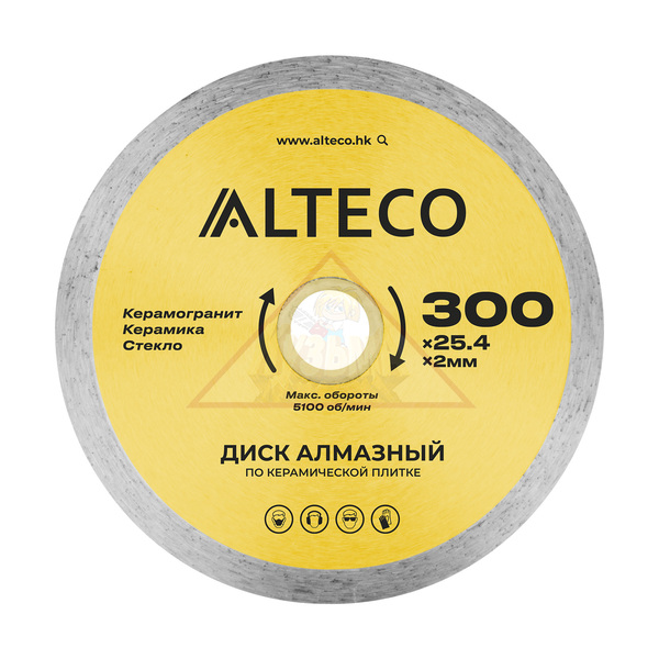 Диск алмазный ALTECO 300x25.4x2 мм применяется для сухого реза по керамической плитке. Обеспечивает точный и качественный рез без сколов. Толщина алмазного сегмента - 2 мм.