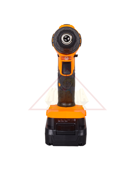 Устройство оснащено 2 литий-ионными аккумуляторами с увеличенным числом циклов зарядки-разрядки и большой емкостью (2 А*ч). Дрель-шуруповерт может работать в нескольких режимах. Прямой ход на скорости до 400 и 1400 об/мин обеспечит быстрое сверление и закручивание шурупов. Реверсный ход поможет изъять застрявшее в стене сверло и выкрутить метизы. Отличительной особенностью модели является наличие режима удара, что позволяет использовать ее в качестве ударной дрели для работы с бетонными поверхностями. Удлиненная форма обеспечит доступ в любое труднодоступное место, наличие подсветки улучшит видимость при проведении работ. Корпус инструмента выполнен из прочного пластика, в зоне расположения мотора имеются отверстия для вентилирования. Ручка покрыта антискользящим материалом. Вес инструмента – 1,3 кг.