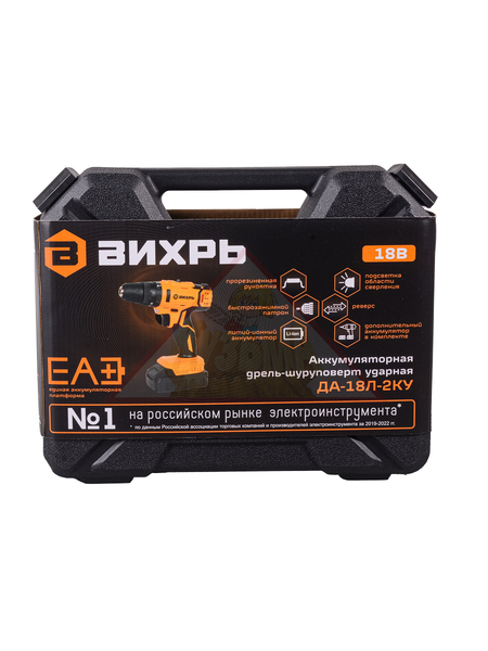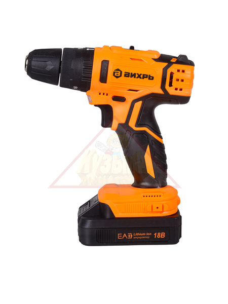 Дрель-шуруповерт ВИХРЬ ДА-18Л-2КУ с режимами удара и реверса, 2 аккумуляторами и 2 скоростями станет оптимальной заменой ручному инструменту, облегчит сверление отверстий в металле, дереве, пластике и бетоне, вкручивание и выкручивание крепежа.