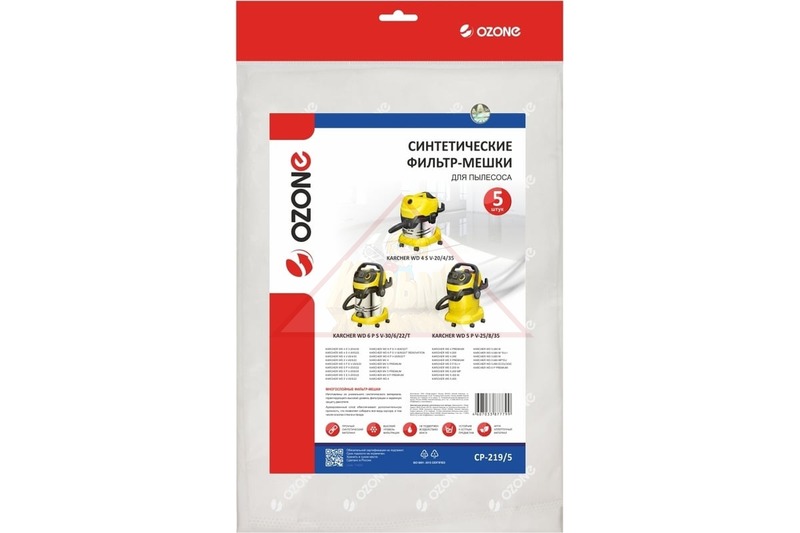 Фильтр-мешки Ozone CP-219/5 для пылесосов Karcher MV 4, MV 5, MV 6, а также WD 4, WD 5 и WD 6 – это комплект из 5 прочных синтетических мешков, которые отлично справляются с уборкой как сухого мусора, так и влажной пыли. Они не рвутся, не боятся влаги, хорошо удерживают даже самые мелкие частицы и помогают поддерживать стабильную мощность всасывания пылесоса. Мешки легко устанавливаются и надежно фиксируются, а после использования просто утилизируются. Это удобное и долговечное решение, которое сделает уборку проще и эффективнее.