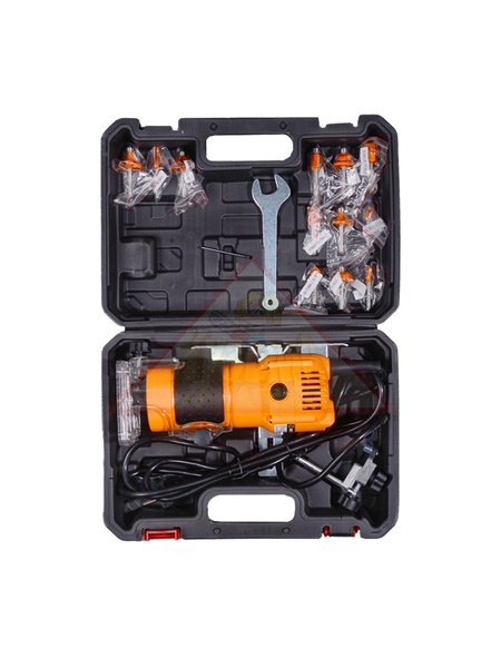 Машина поставляется в удобном кейсе, который защищает инструмент от механических повреждений и облегчает его транспортировку. В комплекте также идет набор из 12 фрез различного профиля, что значительно расширяет возможности ее применения в столярном деле и производстве мебели.