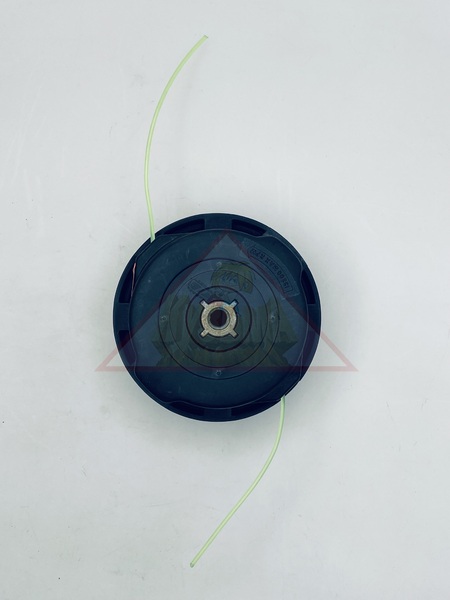 Головка является полуавтоматической, т.е. леска подается либо вручную при выключенном двигателе, либо автоматически при включенном двигателе и нажатии кнопкой (в нижней части головки) о землю.
