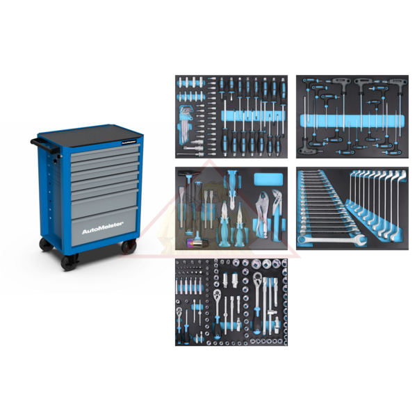 Инструментальная тележка AutoMeister TM1B7N-218 + набор инструмента 218шт. T15218E - колеса диаметром 125 мм для легкого перемещения по неровностям.
