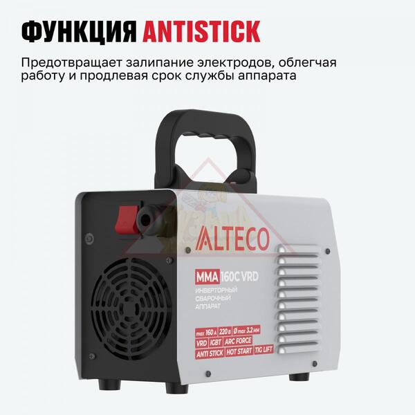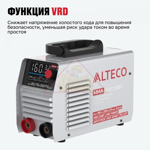 Инверторный сварочный аппарат ALTECO MMA 160C VRD — компактное и надежное решение для бытовой сварки. Идеален для начинающих и домашних мастеров: легкий, портативный и простой в освоении. Удобен как для использования в домашних условиях, так и для выездных работ. Оснащен современными технологиями, обеспечивающими стабильную дугу и безопасную работу. Отличный выбор для мелких сварочных задач в гараже, на даче или при ремонте.