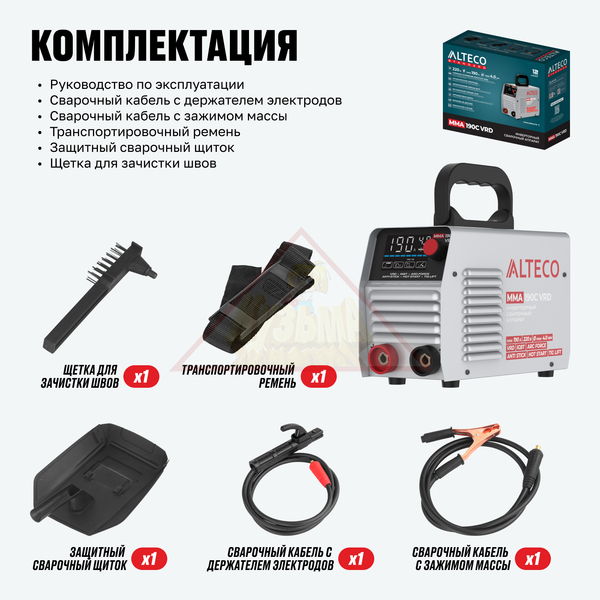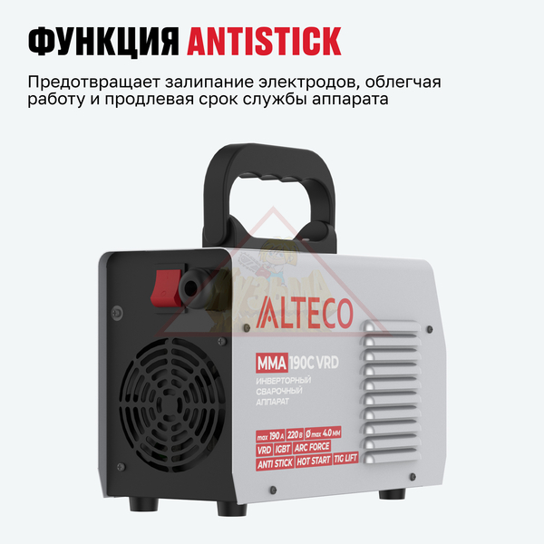 Инверторный сварочный аппарат ALTECO MMA 190C VRD — компактное и надежное решение для бытовой сварки. Идеален для начинающих и домашних мастеров: легкий, портативный и простой в освоении. Удобен как для использования в домашних условиях, так и для выездных работ. Оснащен современными технологиями, обеспечивающими стабильную дугу и безопасную работу. Отличный выбор для мелких сварочных задач в гараже, на даче или при ремонте.