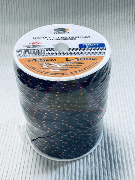 Оптимальный диаметр 4.5 мм обеспечивает удобный хват и стабильную работу стартера. Канат обладает высокой прочностью на разрыв, устойчив к износу и многократным рывковым нагрузкам, что особенно важно при интенсивной эксплуатации.