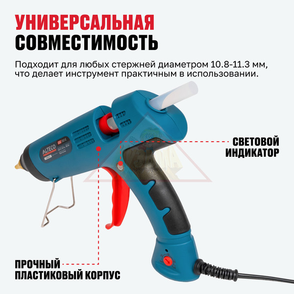 Клеевой пистолет ALTECO GG 150 E идеальное решение самых различных задач. Мощность 150 Вт обеспечивает быстрый нагрев для экономия времени. Применяются клеевые стержни диаметром 10.8-11.3 мм.