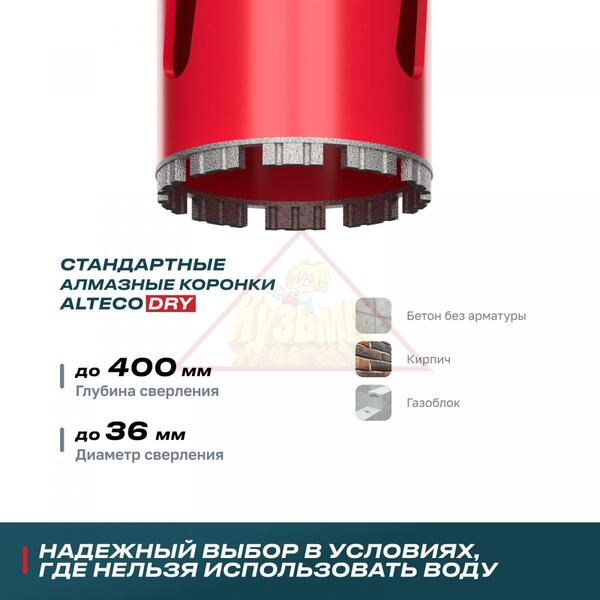 Коронка алмазная для сухого бурения BT (36х450 мм) ALTECO, арт. 41362 Коронка алмазная для сухого бурения BT (36х450 мм) ALTECO, арт. 41362 Коронка алмазная для сухого бурения BT (36х450 мм) ALTECO, арт. 41362