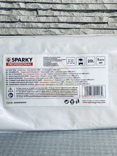 Мешки для пылесоса (5шт.) SPARKY VC 1220, VC 1221, VC 1321MS (20 литров) 20009640004