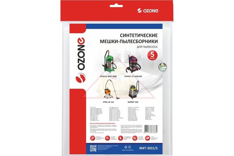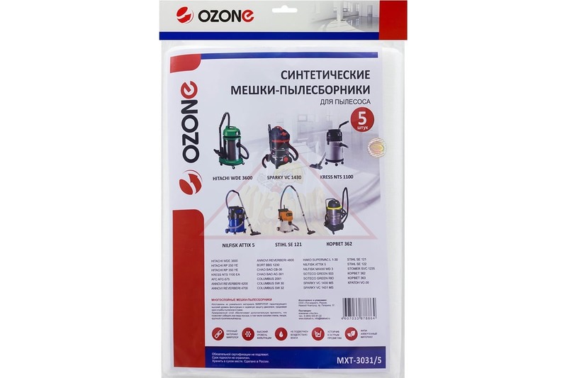 Мешки для пылесоса OZONE MXT-3031/5 — это комплект из пяти прочных синтетических мешков, подходящих для моделей HITACHI WDE 3600, KRESS NTS 1100 EA, COLUMBUS, NILFISK, SOTECO SPARKY, STIHL, STOMER, КОРВЕТ и КРАТОН. Они не рвутся и не боятся влажной пыли, обеспечивая стабильную мощность всасывания и долгий срок службы пылесоса. Эти мешки идеально подходят как для дома, так и для мастерской или ремонта, позволяя собирать сухую и слегка влажную пыль без потери эффективности. Надёжные, долговечные и удобные в использовании, мешки OZONE MXT-3031/5 делают уборку простой, быстрой и эффективной.