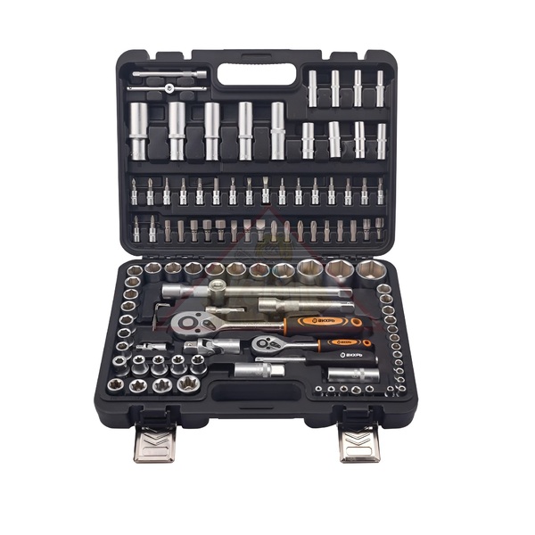 Комплект включает удлинители 1/2” и 1/4”, отвертку-держатель 1/4”, головки свечные, а также торцевые головки удлинённые 1/4" и TORX 1/2". В набор вошли биты и адаптер для бит 5/16”, а также головки торцевые 1/2", 1/4" и TORX 1/4". Вороток 1/4” и 1/2”, ключ трещоточный, кардан 1/4" и 1/2" — всё это позволяет производить любые работы с лёгкостью и эффективностью.