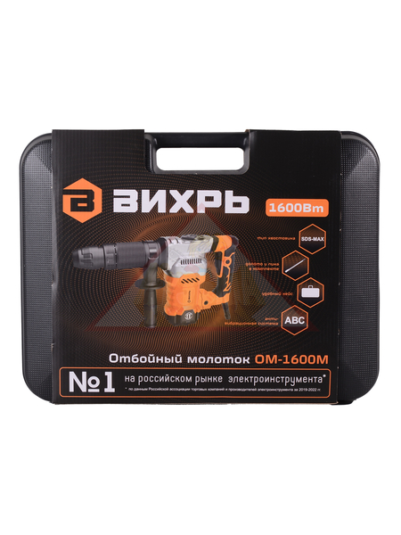 Отбойный молоток модели Вихрь ОМ-1600М – инструмент, который отлично справляется с разрушением твердых материалов. Его мощность равна 1600 Вт, а сила удара составляет 25 Дж. Частота ударов - 4100 в минуту. Может разбивать кирпичные сооружения, бетонные или асфальтированные поверхности, камень и другие материалы.