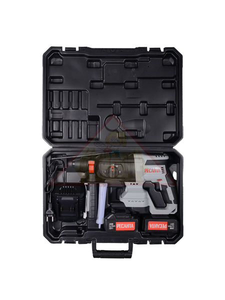 Комплектация - В комплект перфоратора входит 2 аккумулятора емкостью 4 Ач, зарядное устройство, ограничитель заглубления и кейс