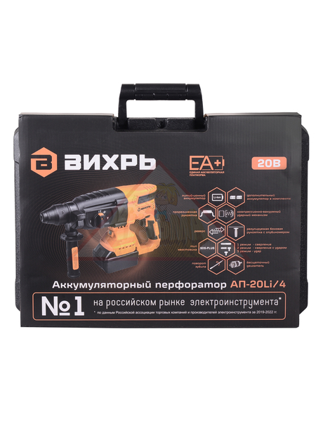 Перфоратор Вихрь АП-20Li/4 — это мощный и удобный инструмент для работы в местах, где нет доступа к электрической сети.