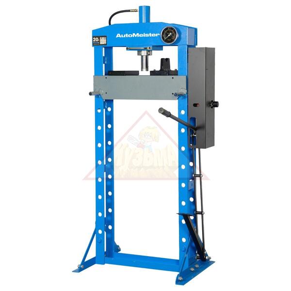Пресс гидравлический AutoMeister 20т T0923H - профессиональный напольный гидравлический пресс с перемещаемым цилиндром вправо-влево, усилием 20 тонн. Оснащён ручным и ножным управлением подачей штока цилиндра. Конструкция включает сварную станину.
