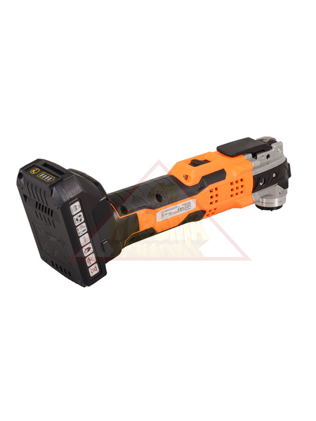 Литий-ионный источник питания на 20 В и 2 Ач обеспечивает длительную работу без необходимости частой подзарядки. Литий-ионная технология гарантирует стабильную мощность, отсутствие эффекта памяти и долгий срок службы аккумулятора. Щеточный двигатель обеспечивает высокую эффективность работы даже при интенсивных нагрузках. Это делает реноватор подходящим для резки, шлифовки, зачистки и других задач.