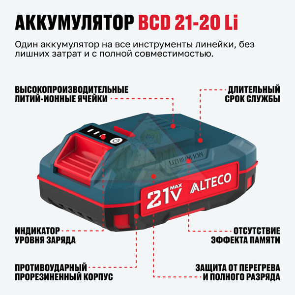 Преимущества аккумулятора ALTECO BCD 21-20 Li