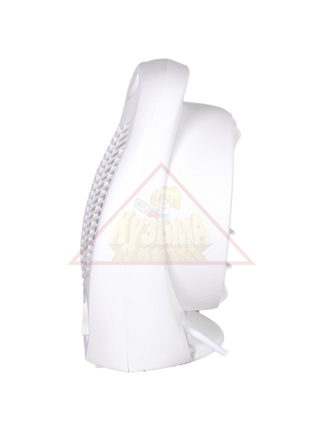 Основу конструкции составляют спиральный нагревательный элемент и вентилятор, обеспечивающий принудительное нагнетание воздуха внутрь устройства и более быстрое размешивание теплых и холодных воздушных масс. Тепловентилятор работает в трех режимах: интенсивный нагрев, средняя мощность, вентиляция без участия нагревательного элемента. Устройство имеет систему термозащиты. В случае перегрева рабочей части или снижения потока воздуха, поступающего внутрь, прибор будет обесточен. В этом случае рекомендуется повернуть регулятор в режим OFF, отключить устройство от сети и дать ему остыть. В профилактических целях прибор следует периодически очищать от пыли. Корпус выполнен из белого пластика, имеет эргономичный стильный вид, оснащен ручкой для более удобного перемещения. Вес устройства – 1,1 кг.