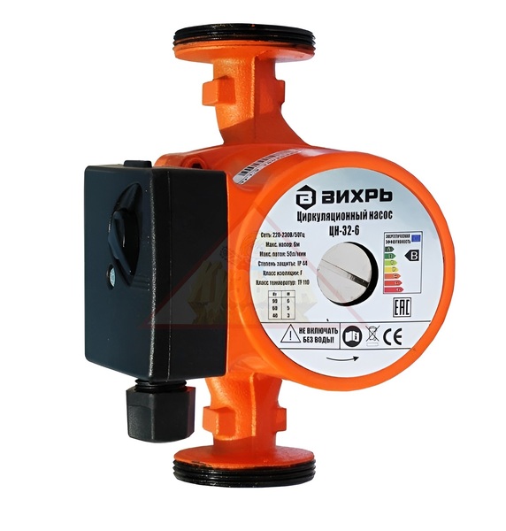 Циркуляционный насос Вихрь ЦН-32-6 68/7/4 предназначен для бытового использования. Характеризуется бесшумностью в работе, надежностью и долговечностью. Электродвигатель охлаждается перекачиваемой водой. Имеются три режима работы, каждый из которых влияет на скорость движения теплоносителя.