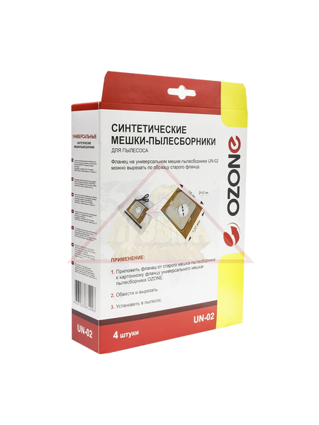 Универсальные мешки-пылесборники Ozone UN-02 – это комплект из 4 прочных синтетических мешков с микрофильтром, которые подходят для большинства моделей бытовых пылесосов. Размер фланца 120х190 мм и отверстие диаметром 50 мм делают их универсальными в использовании. Каждый мешок выполнен из многослойного нетканого материала, который отличается высокой прочностью и надежно удерживает даже мельчайшие частицы пыли, обеспечивая чистоту воздуха во время уборки. Мешки одноразовые, после заполнения легко утилизируются. Если вы ищете практичное и долговечное решение для замены пылесборников, Ozone UN-02 станет отличным выбором для вашего пылесоса.